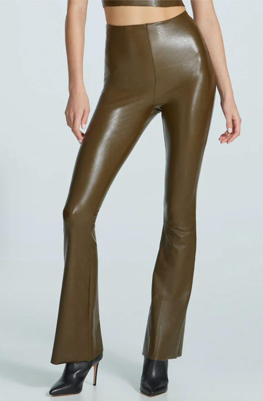 Commando's Faux Leather Flare Leggings feature our signature internal smoothing waistband made from a firming fabric that doesn't bag or sag. The faux leather is soft but flexible with four-way stretch and recovery and even better, these high rise, flare leggings are machine washable.