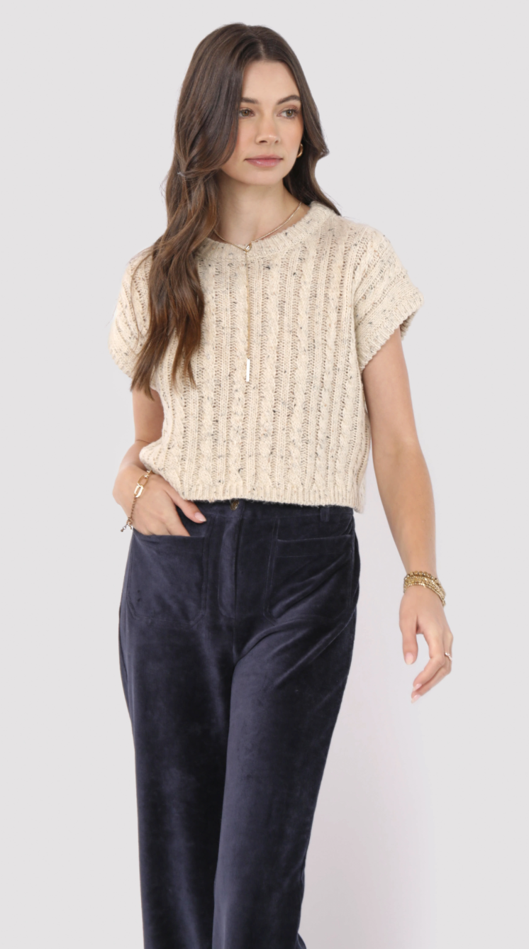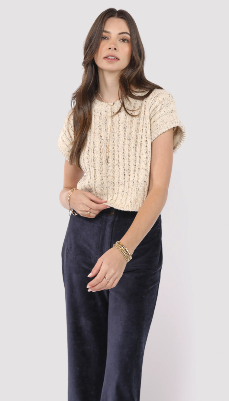 Embrace cozy charm with this oatmeal melange knit short sleeve sweater. Its soft, textured fabric adds a relaxed vibe perfect for layering or wearing solo on mild days. Easy to mix and match, it’s your new go-to piece for effortless style with a playful twist.
