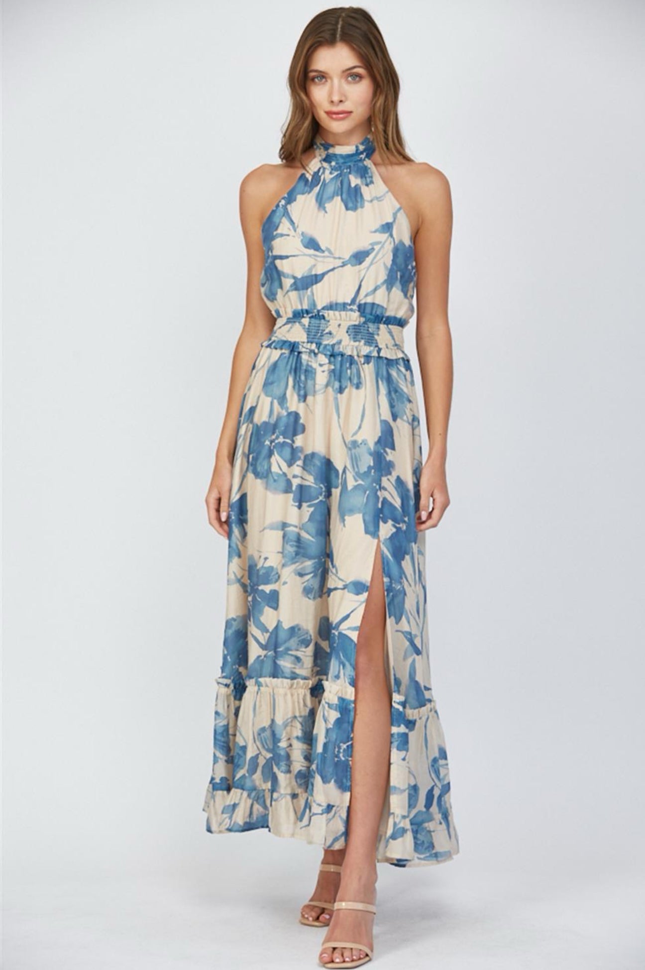 "Stand out in the crowd with our Provence Halter Dress! This cream blue floral print chiffon maxi will have you feeling fun and flirty. Perfect for any occasion, this halter design adds a touch of elegance while still being playful. Bring some Provence charm to your wardrobe today!"