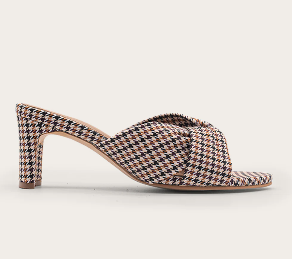 Meet our stunning Sena heels and step into a world of sophistication and comfort. This stunning style was crafted to give you a boost of 2'' in height, while adding a touch of elegance and timelessness with its houndstooth print to any look and will surely become go-to choice. Pair them with a tailored pantsuit for a sophisticated sartorial look both for the office or a special occasion.