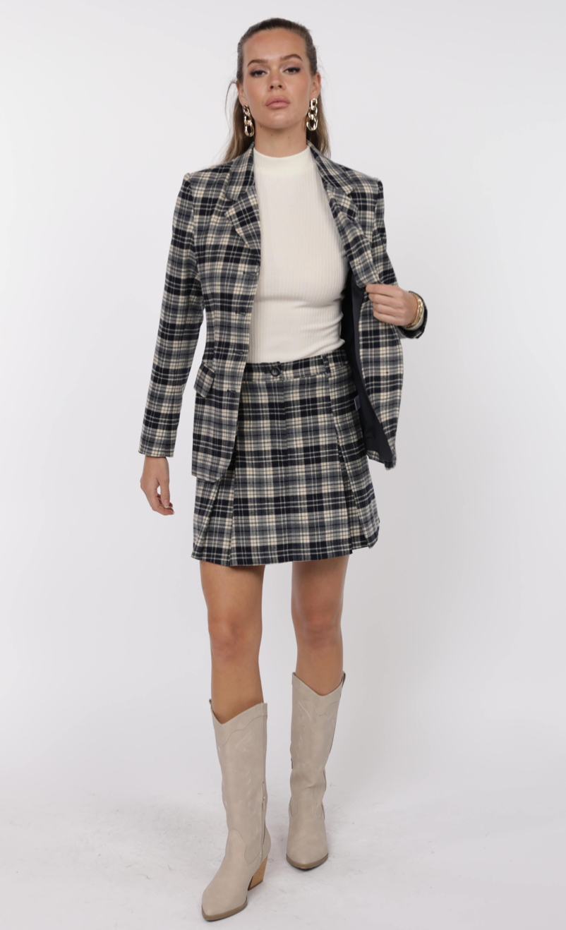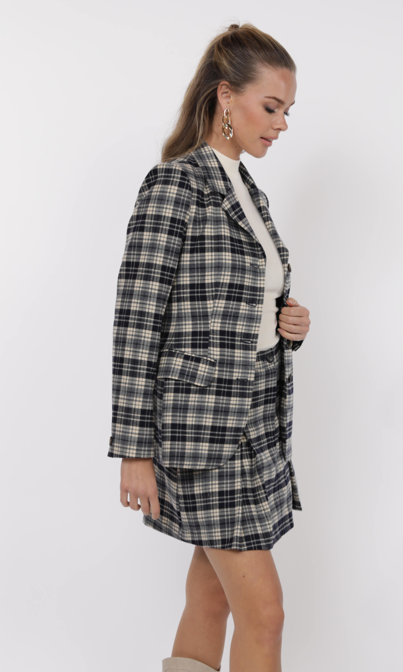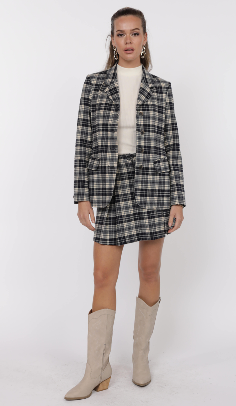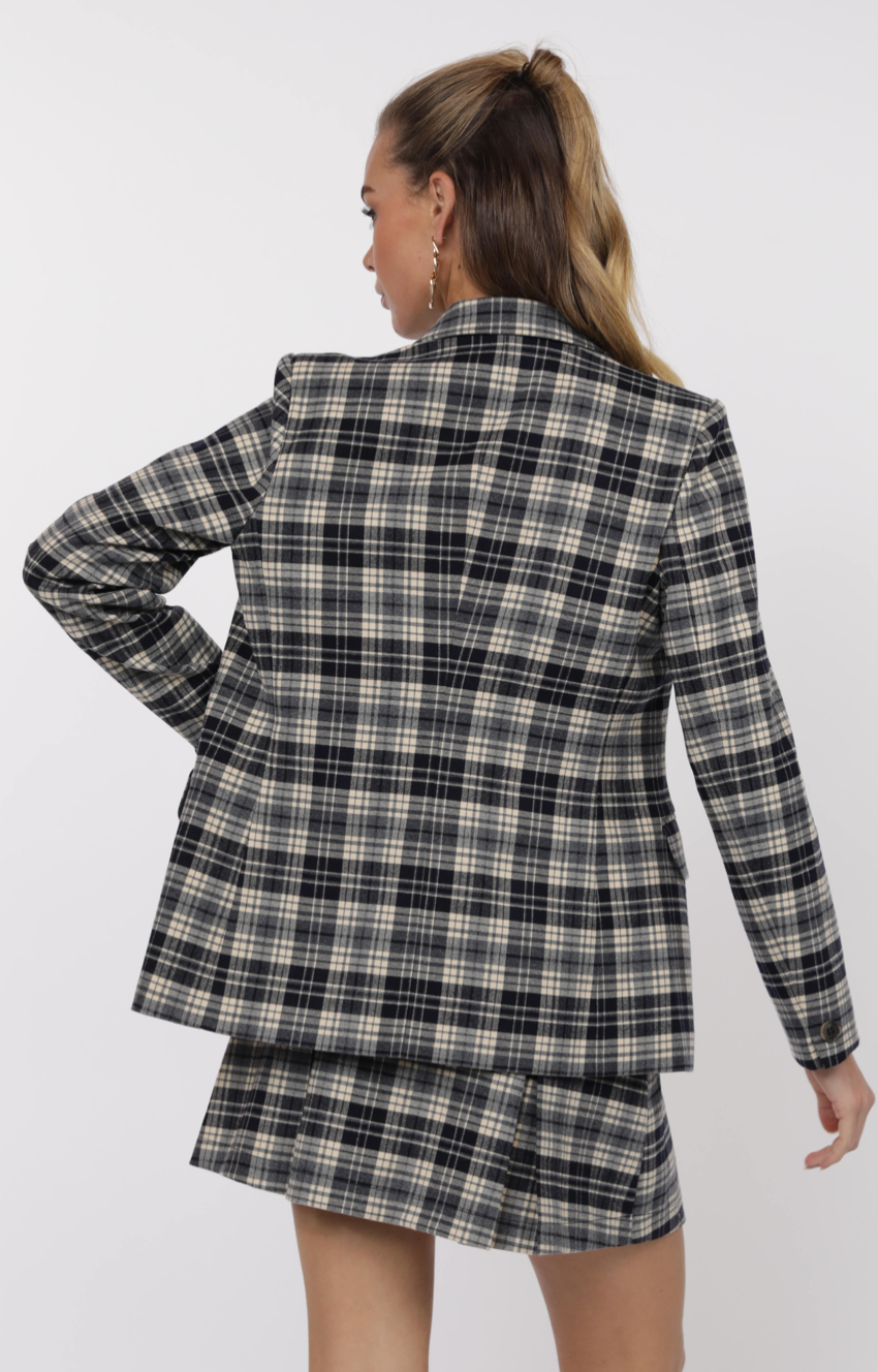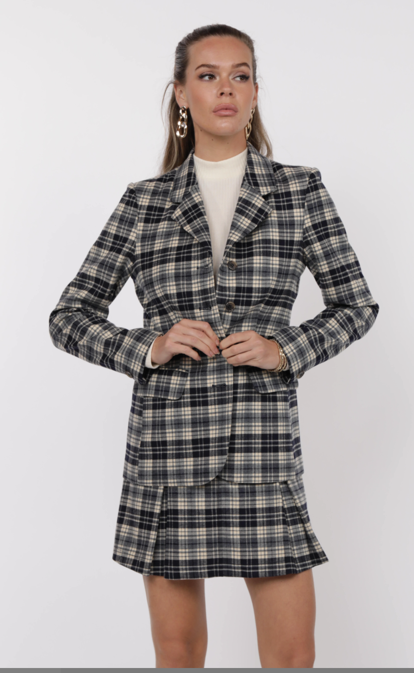 Step out in style with the Wilson Blazer, featuring a charming navy and cream plaid pattern that adds a fun twist to classic tailoring. This blazer effortlessly blends sharp sophistication with playful flair, making it perfect for brightening up any outfit from office hours to weekend adventures. Layer it over your favorite tee or dress it up with slacks—either way, you'll be turning heads with a look that's as lively as it is polished.